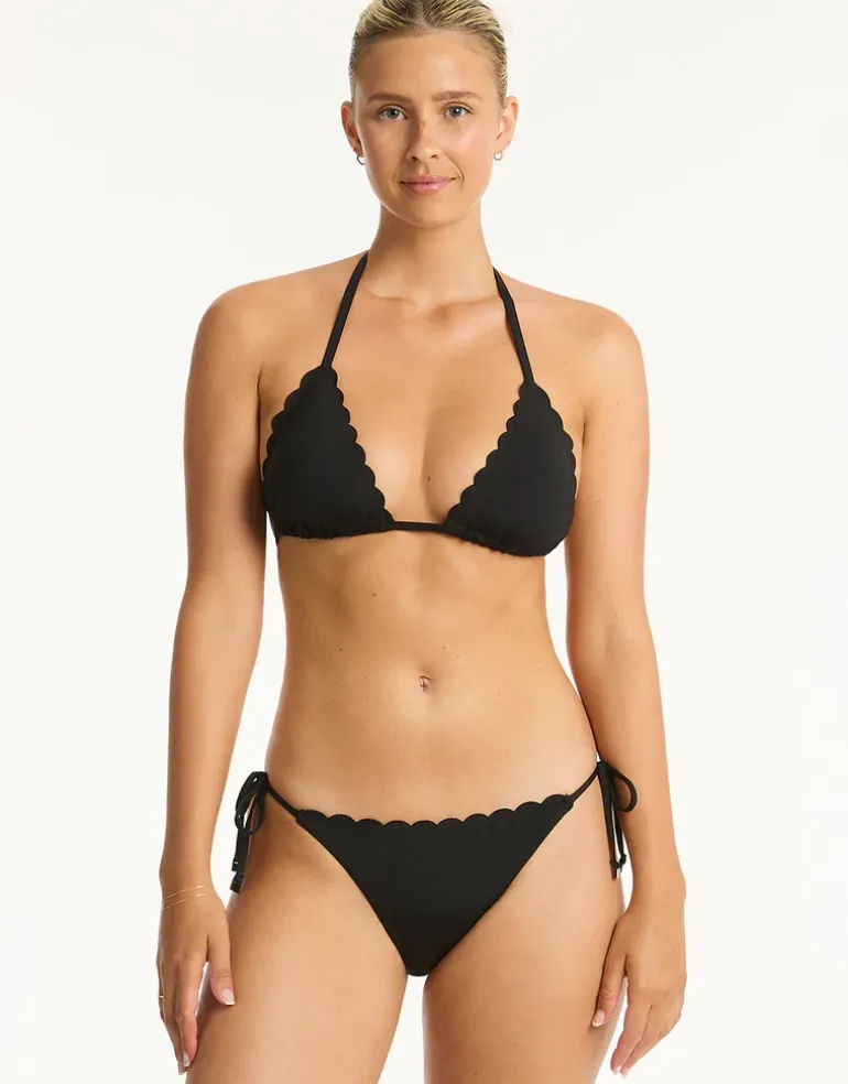 The Scallop Tie Side bikini pant from Sea Level Australia is part of a collection of swimwear using Sea Levels Eco recycled base which has a sleek and soft hand feel and is designed for the ultimate comfort and support. This l cute little pant has moderate rear coverage and ties at the sides.