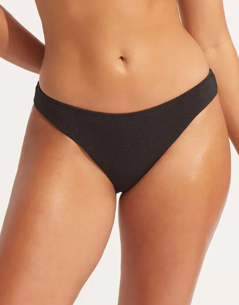 The Sea Dive Hipster bikini pant from Seafolly is made from lovely stretch fabric knitted with a beautiful textural wave, lifting plain coloured styles with lustre and a three-dimensional effect. This classic hipster style is cut low on the hips and has moderate coverage.