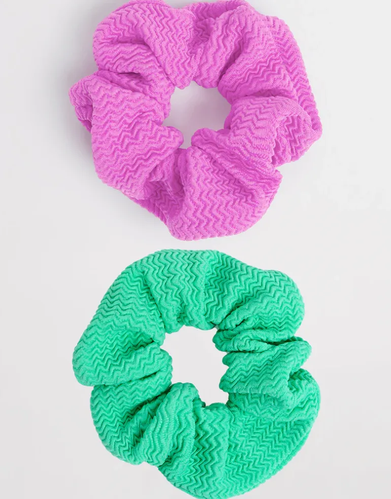 The Sea Dive Scrunchy 2 Pack from Seafolly contains two lovely hair scrunchines; one Jade green coloured and one Violet coloured. The perfect way to keep your hair tied up while matching with your favourite Sea Dive swimwear.