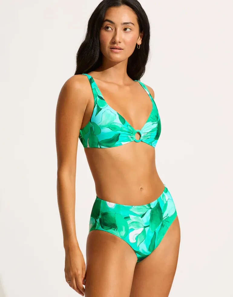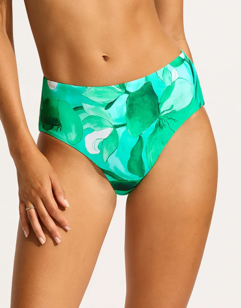 The Secret Garden High Waist bikini pant from Seafolly in beautiful Jade green floral print is a fabulous maxi style with a high waist and full rear coverage.