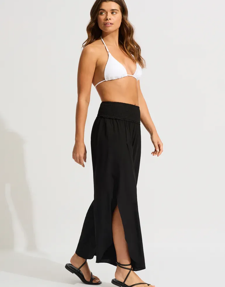 The Seafolly Shirred Waist Wrap Beach Trousers will feel cool and look stylish on laidback summer days with its lightweight, loose-fitted wrap leg design that will billow beautifully in the sea breeze.
