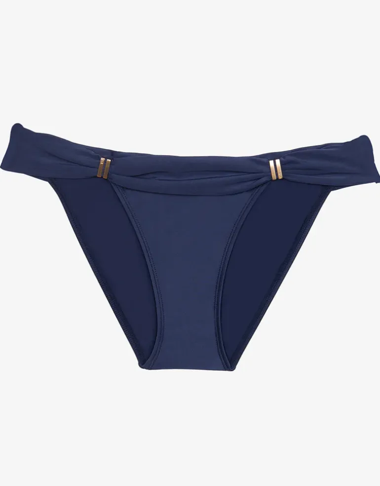 The Signature Bia Tube bikini pant in classic navy blue with 24-karat gold-plated adjustable sliding tube detail in fully lined full-cut style. Complete the look with the matching Vix Signature Bia Tube top in navy.