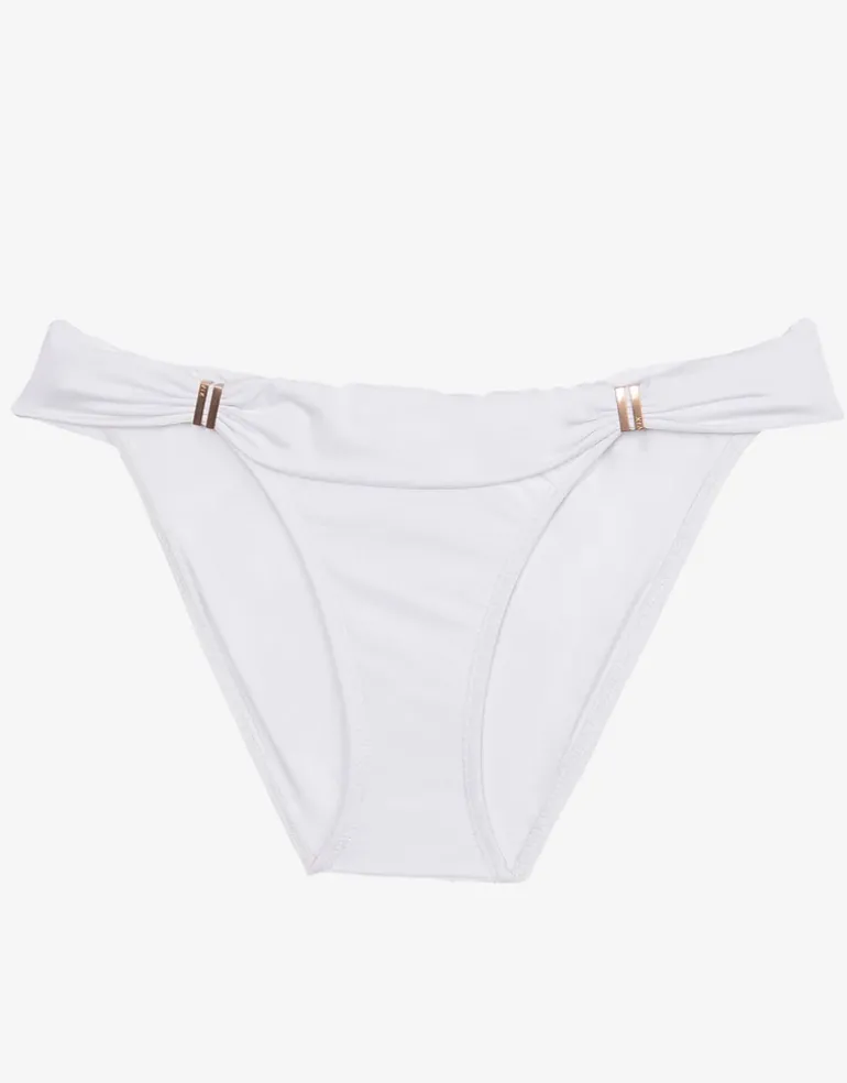 The Signature Bia Tube bikini pant in white with 24-karat gold-plated adjustable sliding tube detail in fully lined full-cut style. Complete the look with the matching Vix Signature Bia Tube top in white.