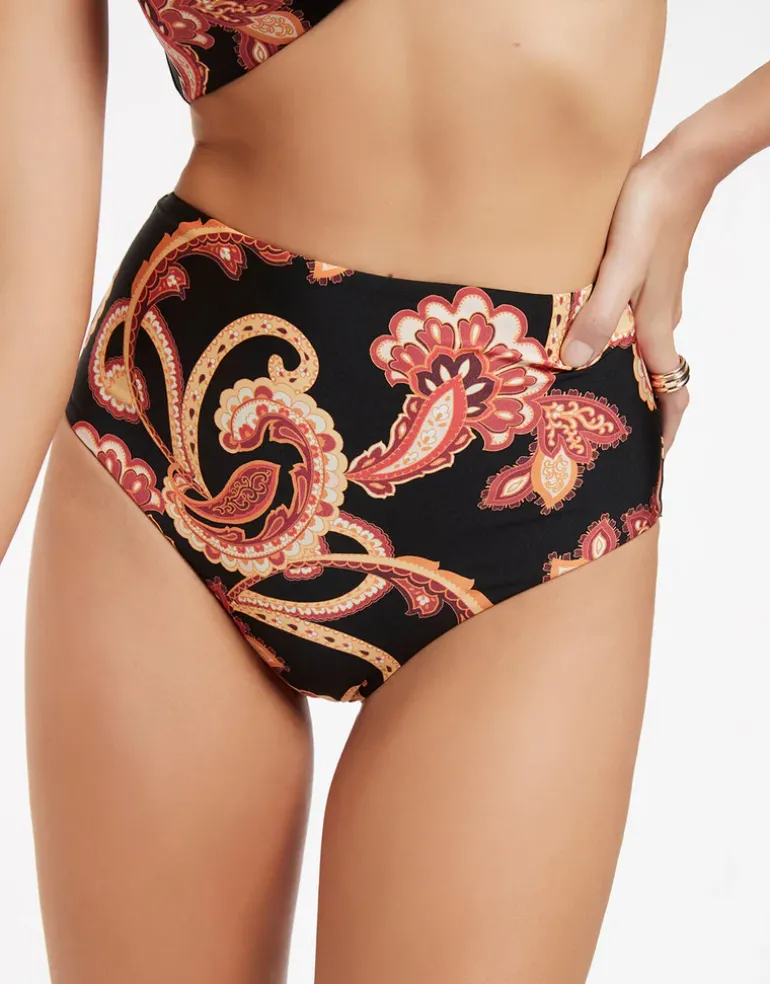 The Silk Road High Waisted bikini pant from Jets has medium coverage on the bottom and is cut high on the waist.