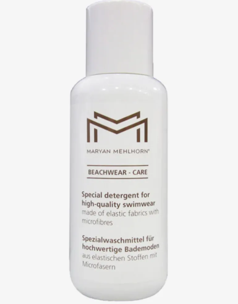 This swimwear wash from Maryan Mehlhorn is a special detergent for high quality swimwear care. Simply rinsing with fresh water is not sufficient for protecting and ensuring your swimwear stays in tip top condition for as long as possible. Use Maryan Mehlhorn’s mild swimwear wash with warm water (up to 30 degrees) and allow to dry in the shade without spinning or ringing. This will help to prolong the life of the elastic fibres in your garment after contact with chlorine, sunscreen, cosmetic or perspiration and to ensure it stays looking it’s best season after season.